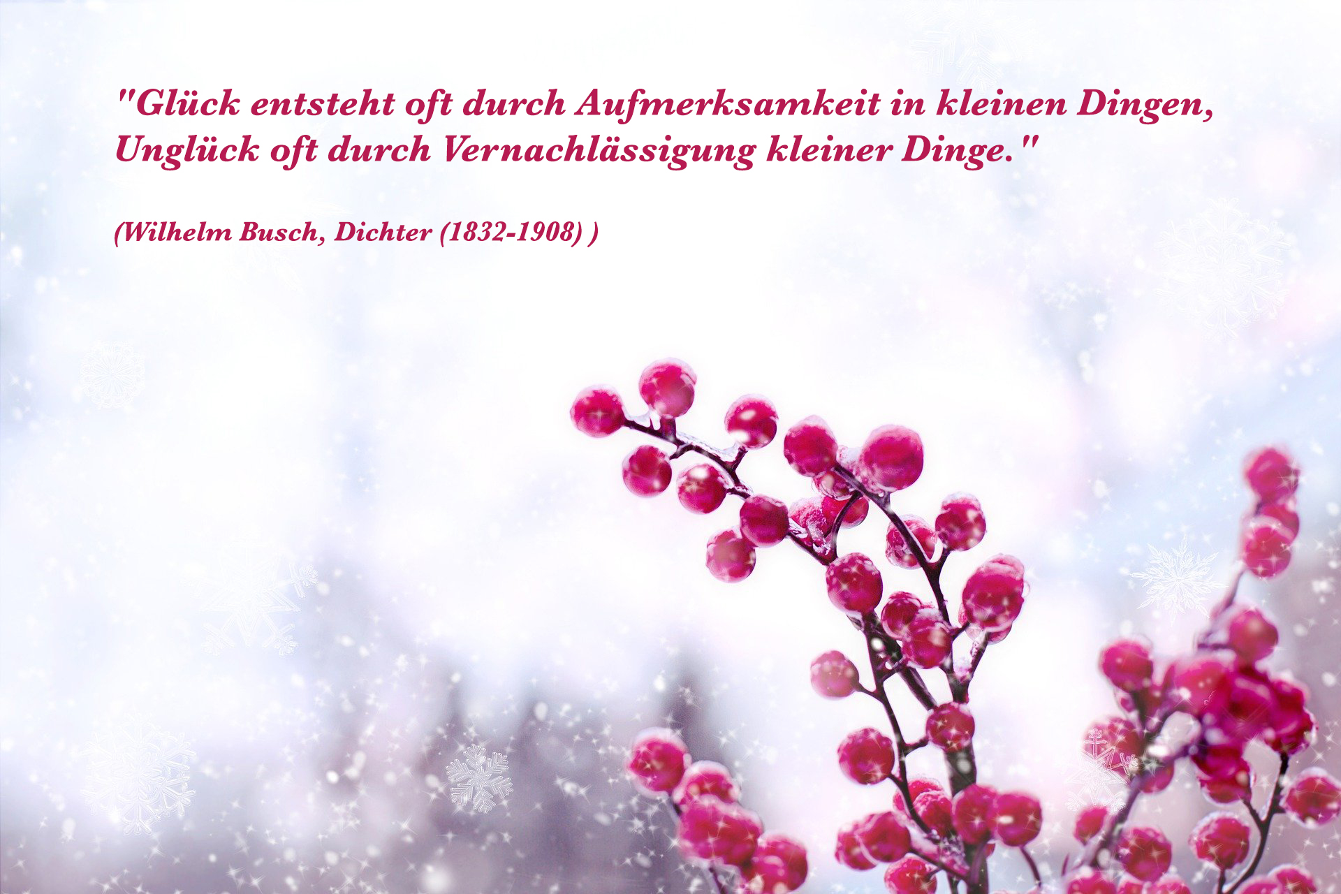 "Mögest du jeden Tag im Leben die Schönheit und das Gute erkennen können."