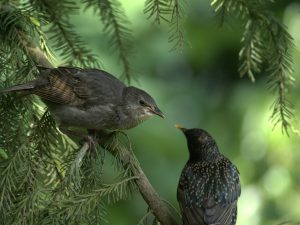 Die jungen Stare (links) in der Nachbarschaft haben sich prächtig entwickelt.