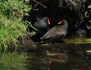 Teichrallen ( = Teichhühner) im Wiesenbach