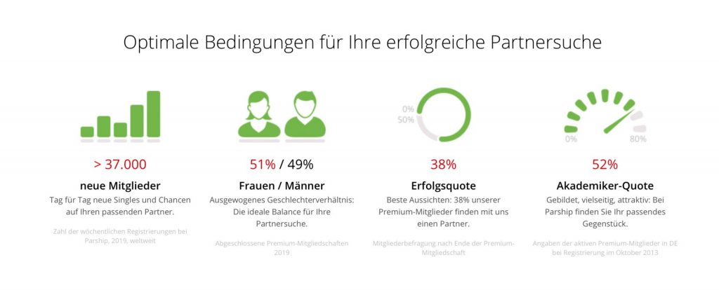 Mit mehr als 5 Millionen „Parshipper“ ist die Partnerbörse einer der größten Partnervermittlungen in Deutschland. Laut eigenen Angaben, melden sich täglich weltweit mehr als 30.000 neue Miglieder an. Laut Statistik ist das Geschlechterverhältnis relativ ausgewogen (Frauen/Männer) 51% zu 49 % unter den Premiummitgliedschaften.