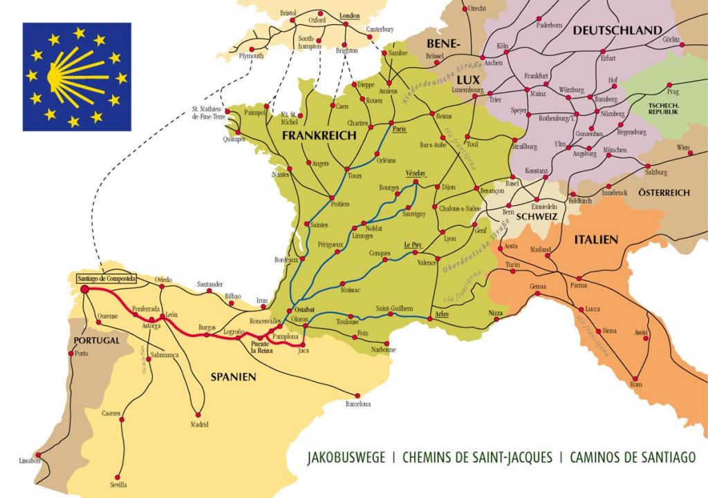 Eine gute Übersicht aller Jakobswege in Deutschland zum Herunterladen gibt es hier.