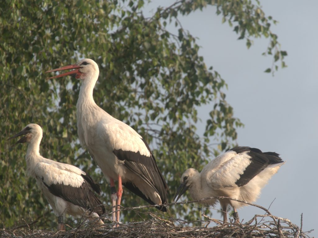 Gestern waren die Storchenbetreuer am Werk und beringten die Jungstörche in den 5 Horsten.