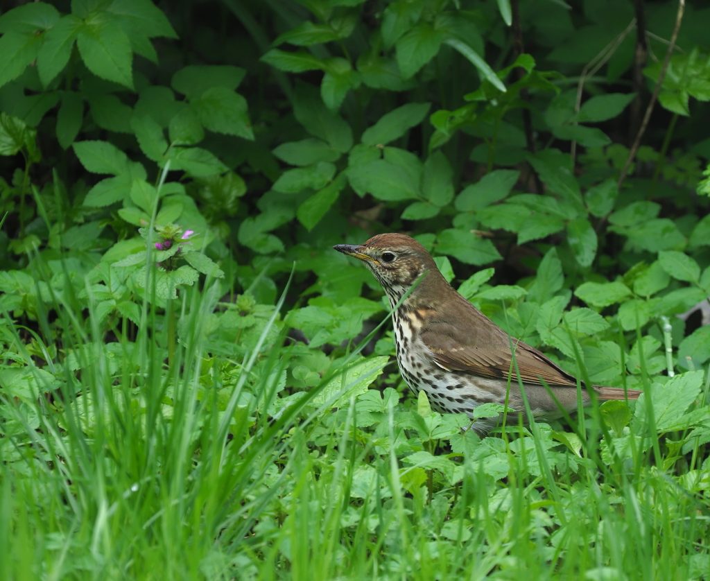 Singdrossel auf Nahrungssuche