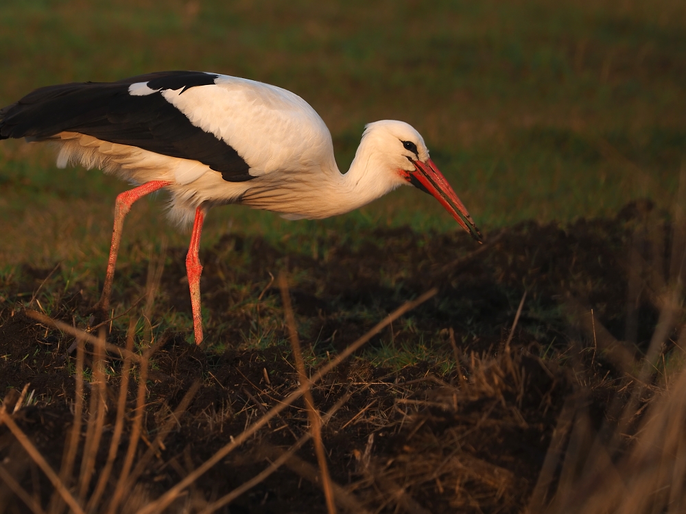 Noch in der Dämmerung sucht der Storch nach Futter und bringt es zum Teil dem brütenden Partner/der Partnerin in's Nest. OLYMPUS DIGITAL CAMERA